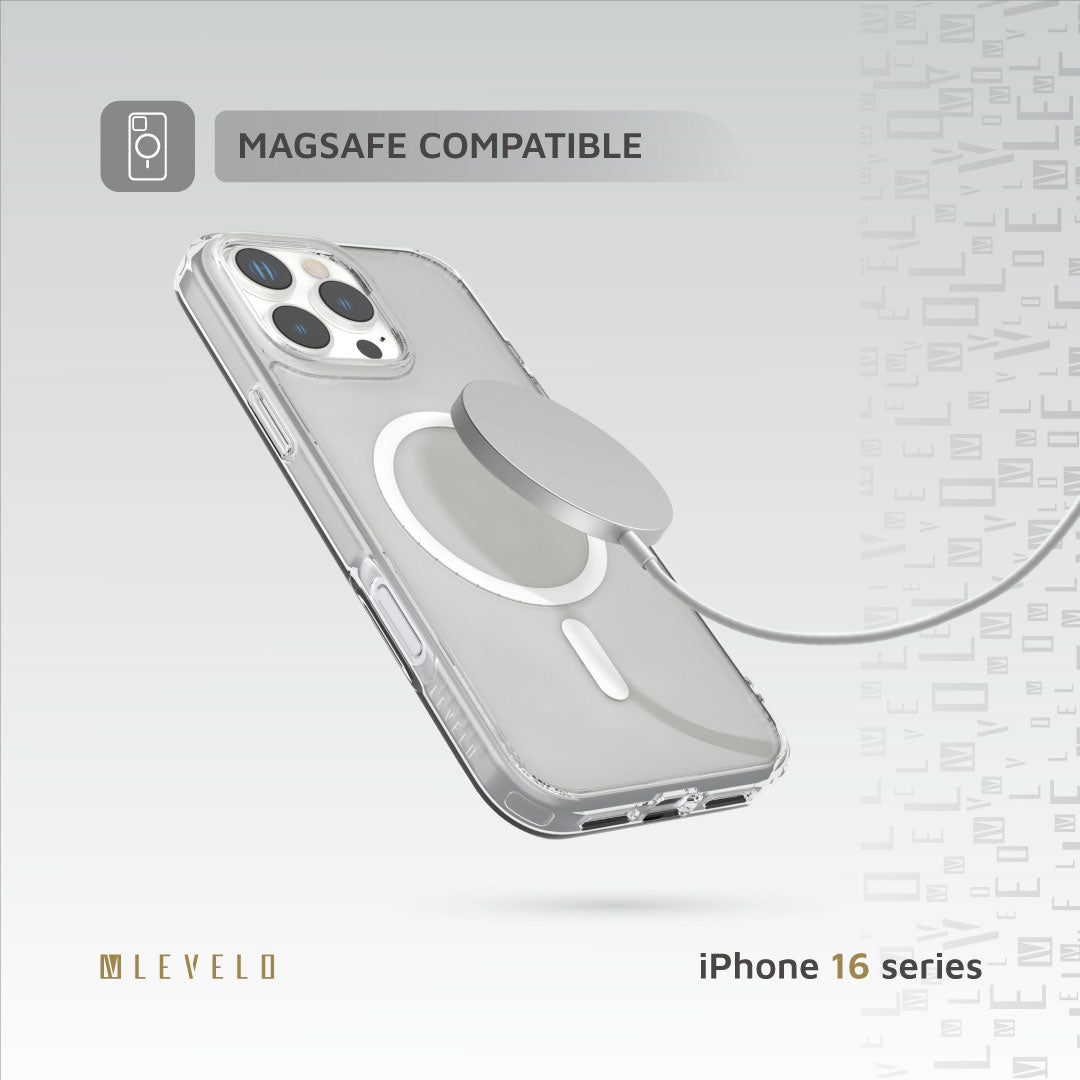 Protect your iPhone 16 Pro or Pro Max with the Levelo MagSafe Clara Case. This crystal-clear design showcases your device's original color while providing reliable drop protection. The integrated MagSafe technology ensures seamless compatibility with magnetic accessories, chargers, and mounts. Precision-engineered cutouts deliver easy access to all buttons and ports. The slim, lightweight profile maintains your phone's sleek aesthetic without bulk. Durable materials resist scratches and yellowing, keeping your case looking pristine. Perfect for users who want transparent protection without compromising style or functionality.