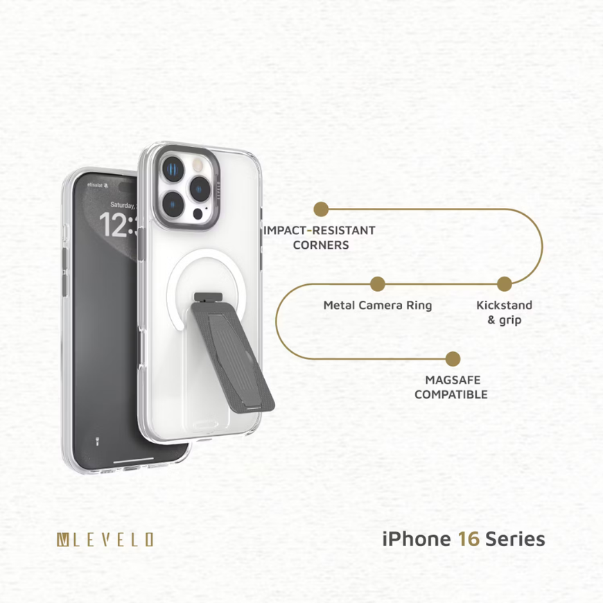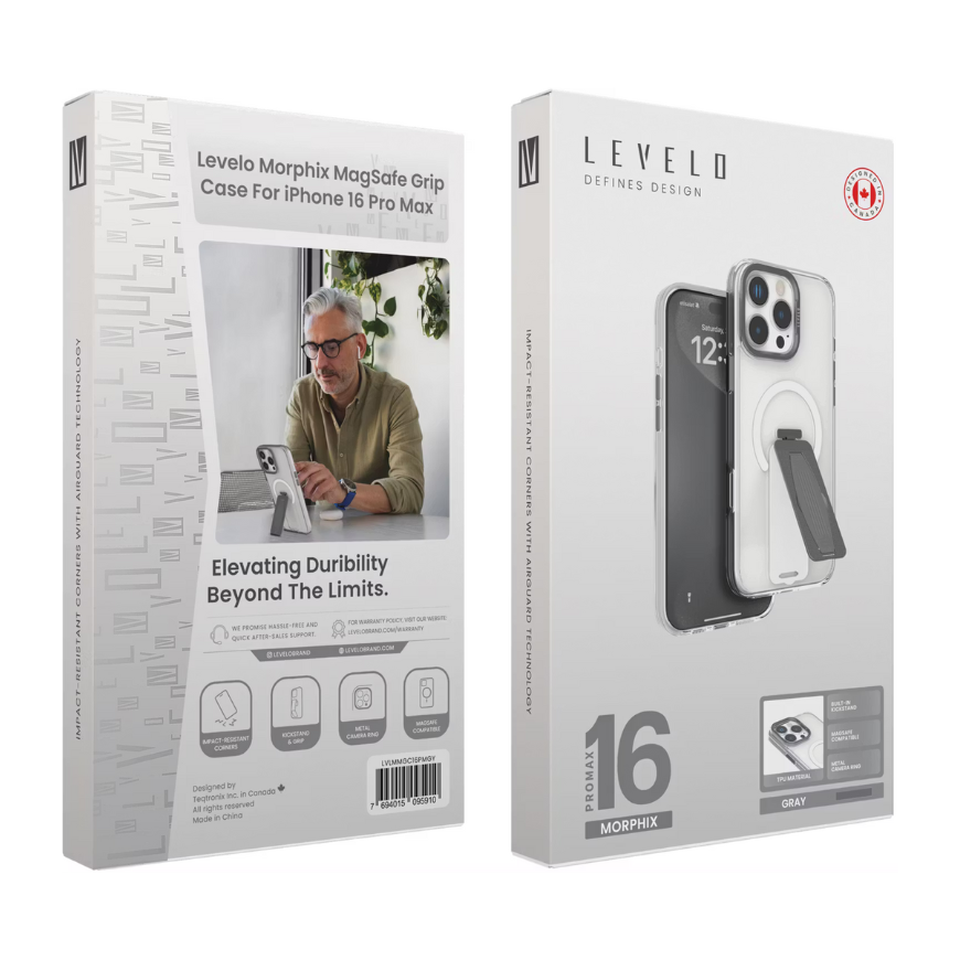Levelo Morphix MagSafe Grip Case for iPhone 16 Pro Max – Grey