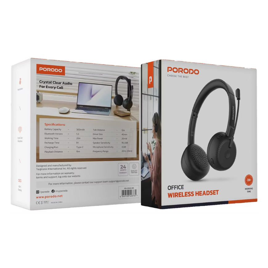 Porodo Office Wireless Headset – Black